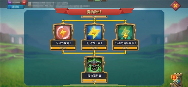 其次,看自身单产什么资源,选择增加该资源生产的英雄进行进阶,比如我单产铁,所以先升级了愤怒和猎手。