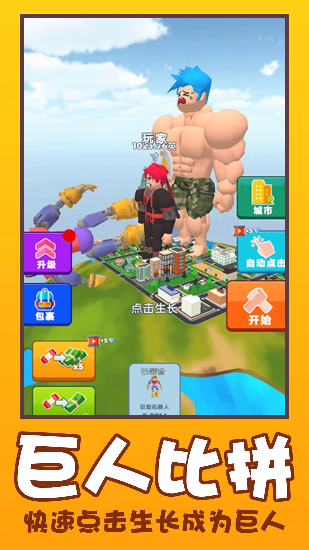 惊呆了老铁是一款庞大的模拟游戏。在游戏中,你将从一个光点角色开始。通过持续的训练和锻炼,你的巨型角色会开始增肌并逐渐增加体重。这将使他们在力量和耐力方面变得更强。