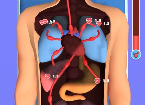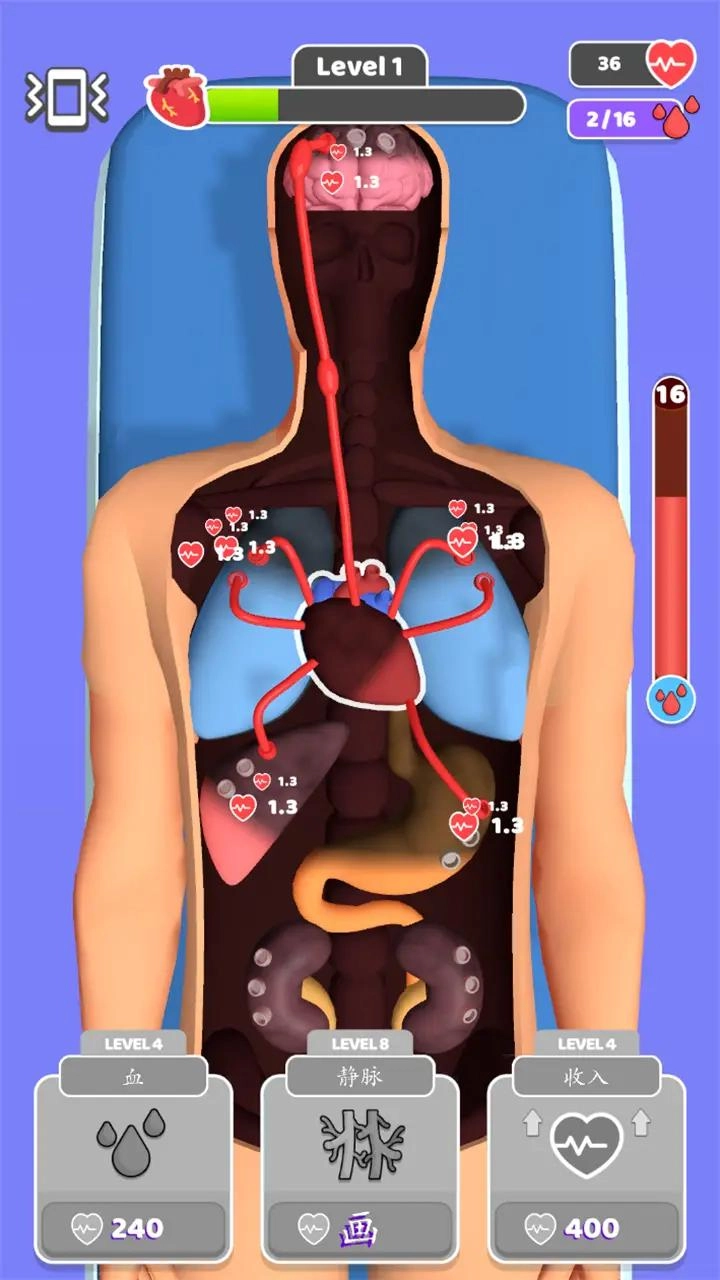 2、 主题 是急救过程的模拟玩家需要引导和突破障碍,将所有血液输送到全身器官;