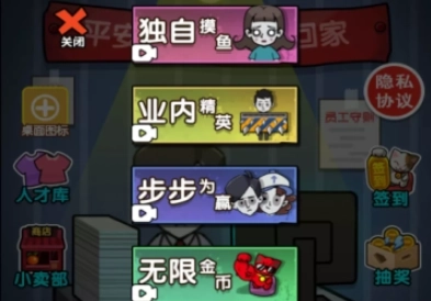 2、在这里积极的摸鱼,获得多多的金币,完成更多的任务开始 闯关 ;