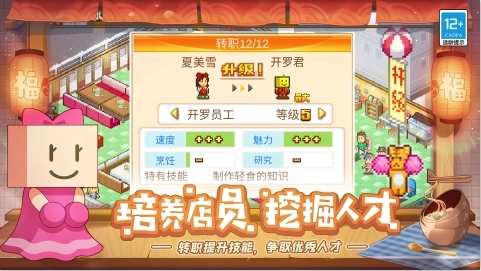 1、游戏中有与NPC 互动 的高度自由。在游戏的故事中,玩家可以自由选择餐厅类型并招募相关人才;
