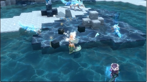 第三个位置在山中小河的中央区域,中央区域会有一个小块范围可以踩上去,在这块踏板的下方就有一个宝箱可以得到。玩家要使用角色潜下去才可以拿到,有一定难度。