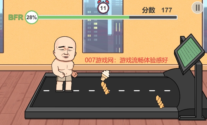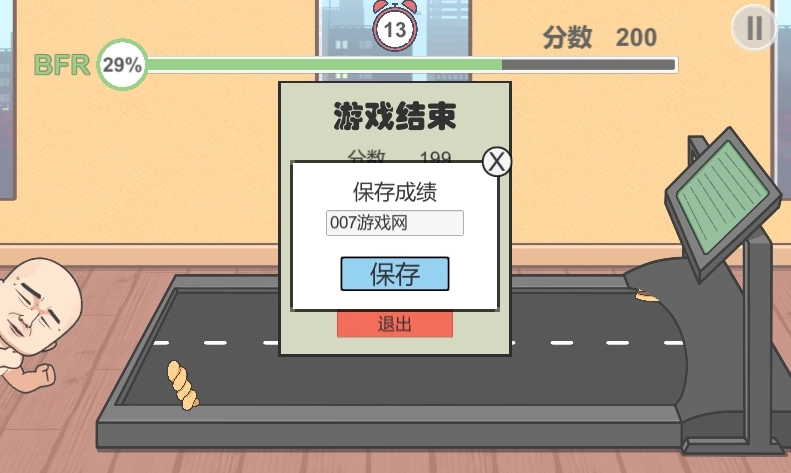 以火爆健身话题设计的 闯关 游戏,玩家在这里利用跑步机 减重 来提升减脂率,从而提高自己的分数!