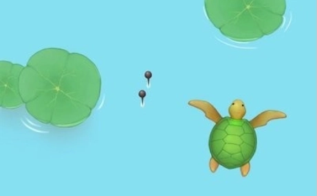 小青蛙吃被小蝌蚪包围的小蝌蚪。把两只小青蛙合并成一只小青蛙。