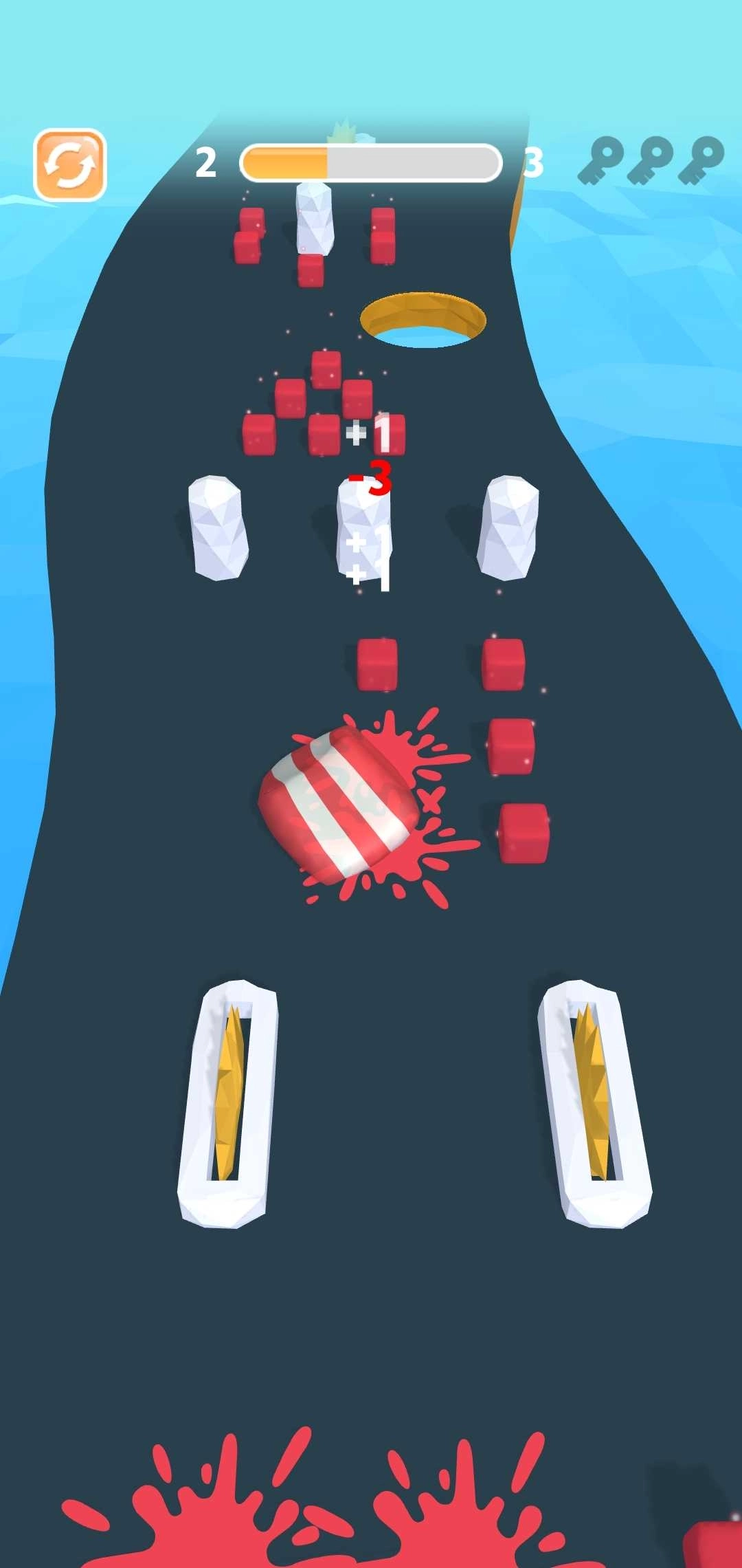 3.补充能量,向前冲刺,大量 关卡 等待你挑战, 收集 各种道具并解锁更多皮肤。