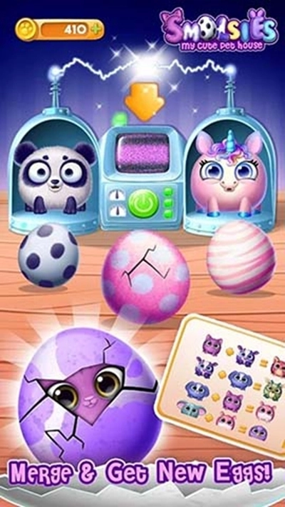 寻找惊喜蛋,合并所有收集蛋,孵出更神奇的宠物,自由装扮,打造 梦幻 宠物屋