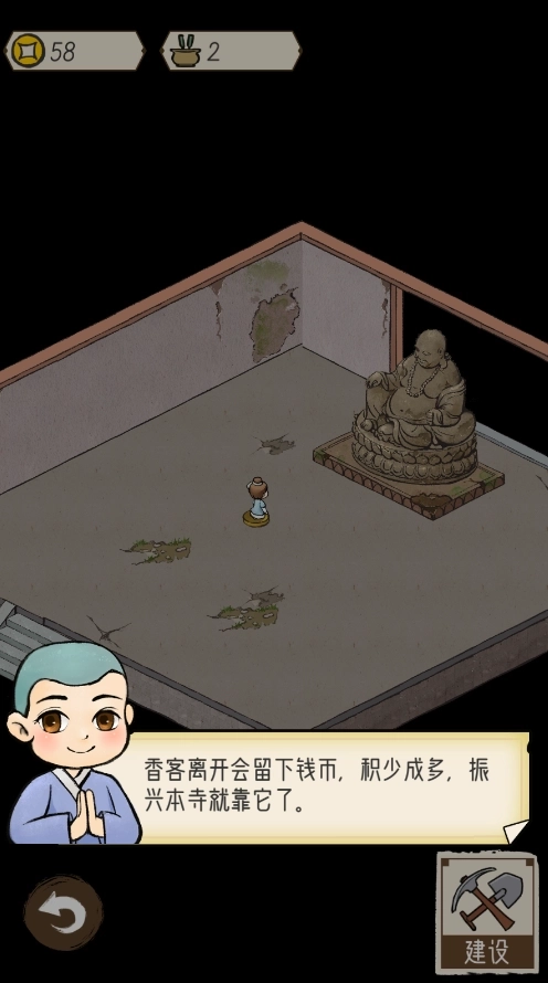 1.参与寺庙建设——在最初阶段,寺庙非常 简单 ,但如果你仔细操作并参与建设,寺庙将得到翻新。