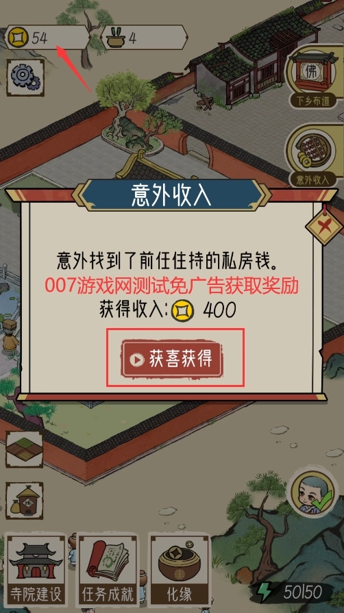 4.开启花园——下山后,您将有机会获得丰富的 道具 和相关活动,从而更好地修建寺庙。