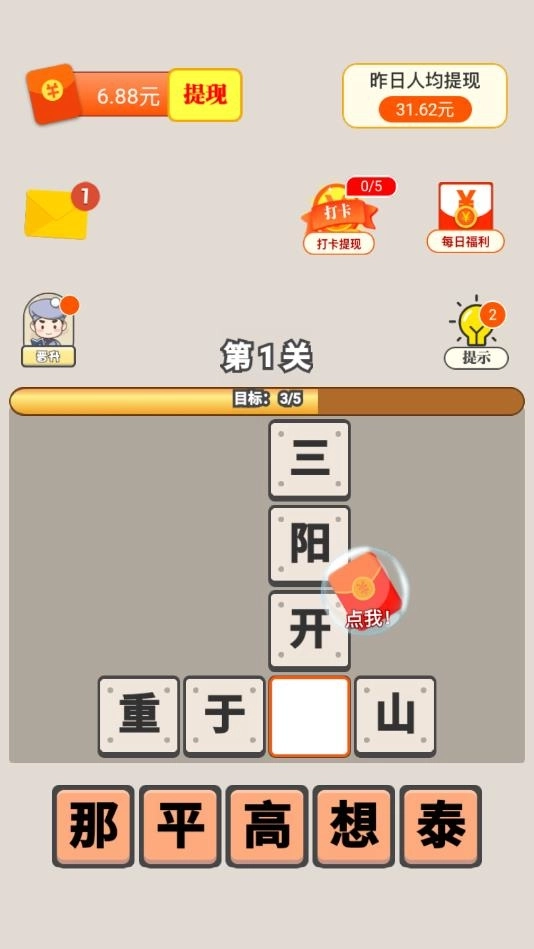 爱上猜成语红包版精心打造的游戏关卡期待您赚钱归来,更多丰富惊喜的内容元素定不会让您失望!