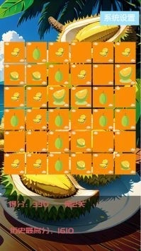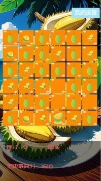 2、看着满屏的榴莲在游戏中不断的进行消除,整个游戏过程非常的解压。