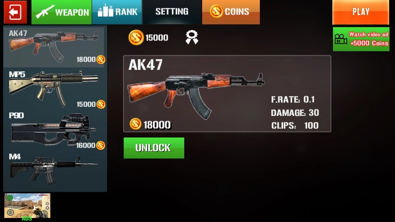 反恐枪炮是一款 第一人称射击 类的游戏,玩家可以根据个人偏好选择心仪的武器,然后快速击败所有敌人,目标是尽快消灭所有的对手。