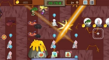 2.轻松简单的操作方法,点击路径土地,使用金币部署植物少女;