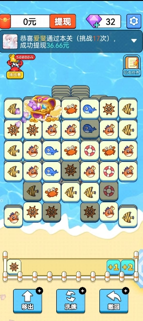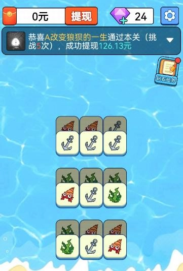 趣味 闯关类的消除游戏,玩家需要通过消除相同的海洋图案来完成任务;