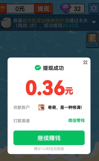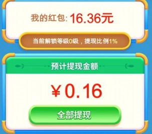 红包按 百分之一 比例提现,有能力的多消除几次也可以兑换0.3元。