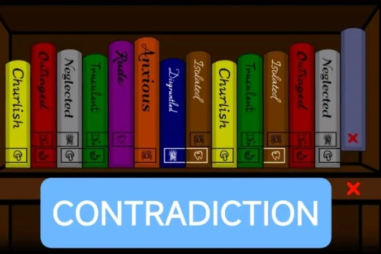 第二章根据上面的颜色摆放后留意各个 便签 的四个角的字母,按每个颜色的路径获取字母提示「contradiction-悖论」,接着用其完成书柜的解谜拿到「书」并将其交给母亲获得「电胶布」,最后用奶酪换取老鼠洞里的「棕色种子」。
