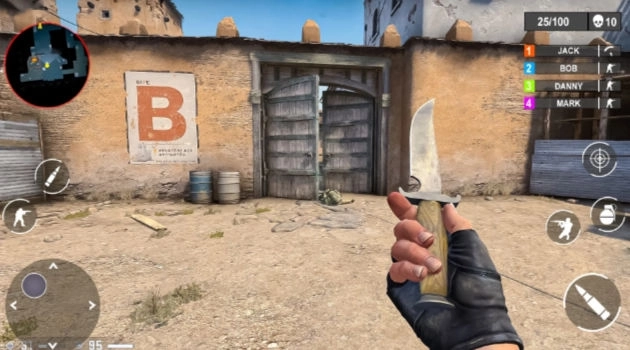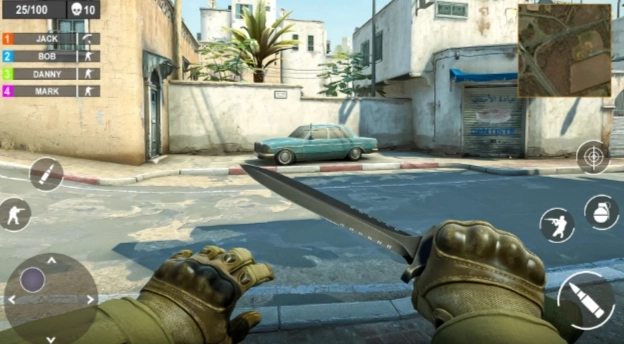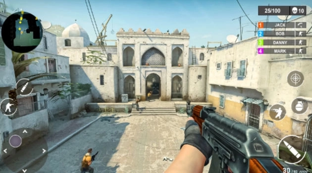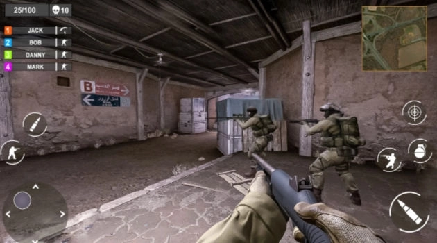 枪战突击队射击游戏采用 第一人称 视角,玩家需要使用各种武器来完成任务,射击恐怖分子并保护平民。提供猎枪、刀具、手榴弹、手枪和突击步枪等多种武器选择,玩家可以根据不同情况选择最合适的武器进行战斗。