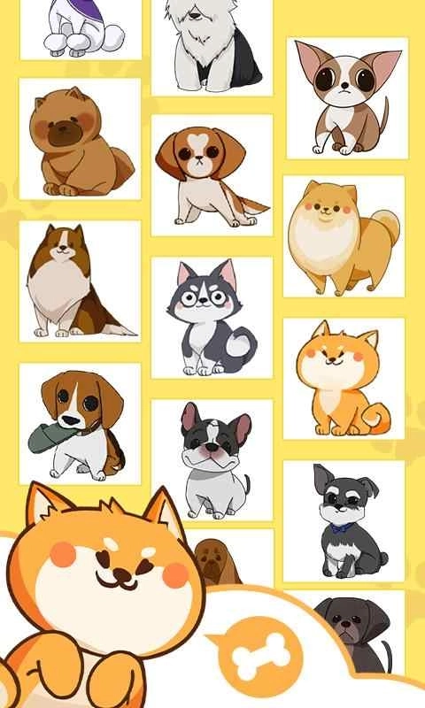 玩家在游戏中可以见到各种各样狗狗 角色 ,两只相同品种的小狗可以合并升级,提升小狗的等级。