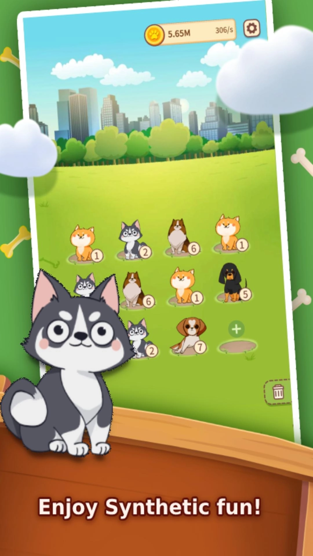 可爱的小狗是一款 传统 而简单的合并游戏。移动 手指 来合并两只相同等级的狗,以诞生一只新狗并赢取丰富奖励。最初,你只是一只小狗。你需要购买新狗并合并相同的狗,以便获取更高级别的狗。
