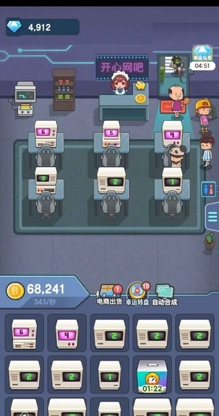 快乐网吧是一款放置挂机类模拟经营游戏,通过合成玩法,升级你的复古电脑,将一家仅有旧式电脑的小型网吧,发展成顶尖的知名网咖。