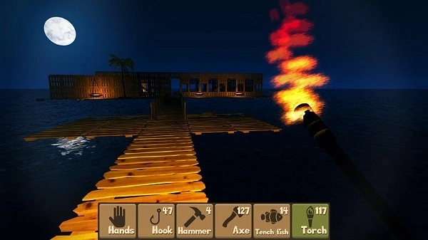 从水收集杂物工艺必需的设备。构建斧子,锤子,绳子和其他的东西来创建新的墙壁,柱子,候车亭。展开你的木筏和为自己创造一个更舒适的生活。