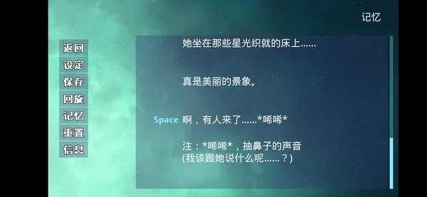 3、经典的视觉小说游戏,简单的操作方式,跟随着剧情去感受即可。