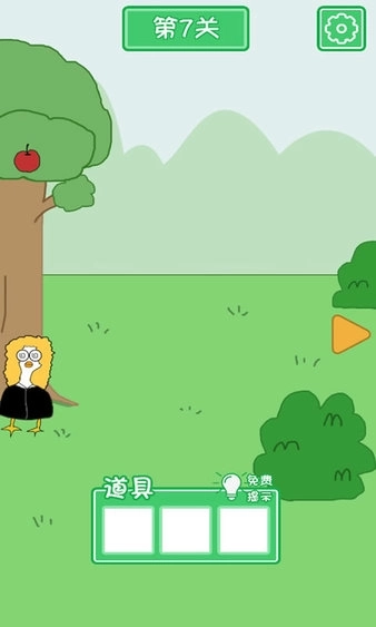 第6关先点击右下边的灌木丛,接着点击铲子。得到铲子后,将铲子拖动到草地上的裂缝处,接着点击小鸭子。得到小鸭子后,点击向右箭头到右边去。在右边,将小鸭子拖动到肌肉鸭手上,接着点击左上边灌木丛旁的树枝。