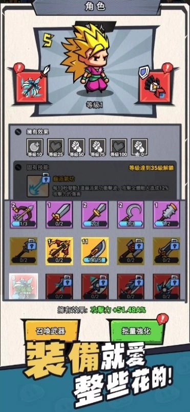4、去选择你喜欢的角色来进行刺激的战斗,还有各种各样的装备可以去选择穿戴的。