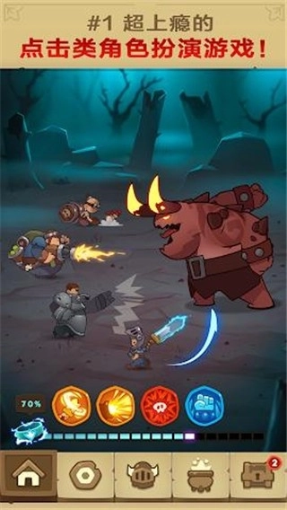 游戏中几乎涵盖了大部分RPG元素,将打怪过程转化为自动战斗,当然你也可以使用英雄释放大招。