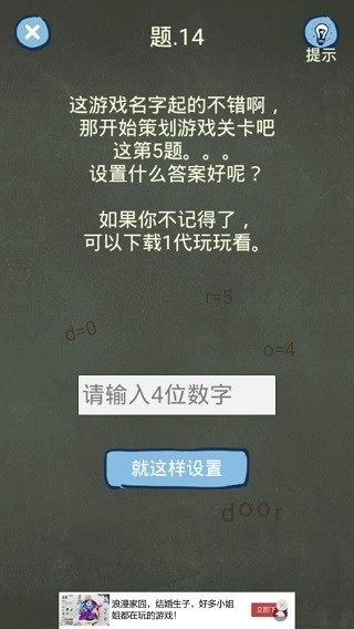 海量奇葩题目,脑洞大开,简约游戏界面,轻松闯关。
