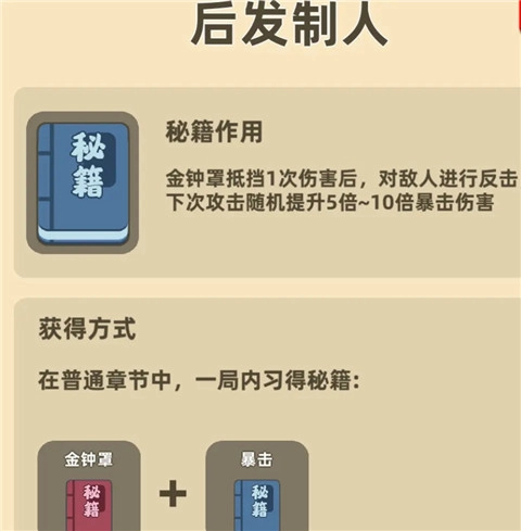 金钟罩抵挡1次伤害后,对敌人进行反击,下次攻击随机提升5倍~10倍暴击伤害