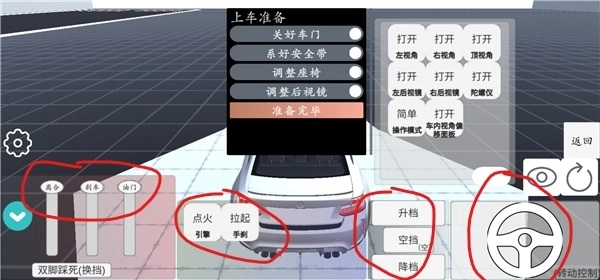 5、左下边的可以帮助玩家调整刹车,油门,换挡,控制方向盘等。