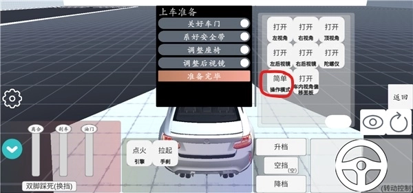 3、玩家可以打卡各种视角,做好上车准备,点击准备完毕开始模拟科目二考试。