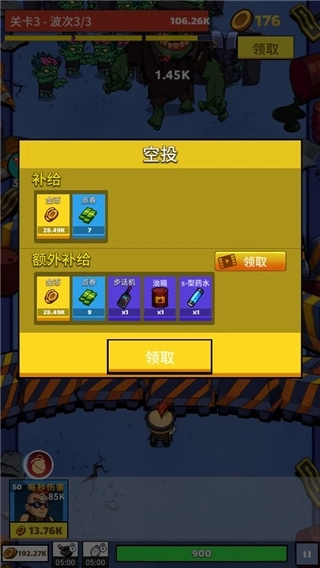 1、作为挂机游戏非常合格,不过在我看来,点击开火的时候非常爽,疯狂的点击屏幕,看着丧尸被我打的支离破碎。感觉算是游戏中最大的一个特点。