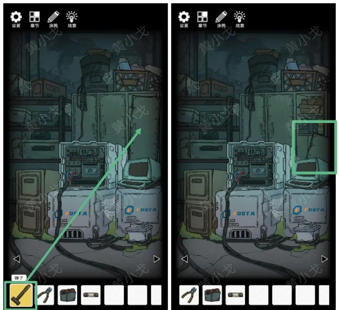 5.用【锤子】砸开柜门,获得【铁柜门】