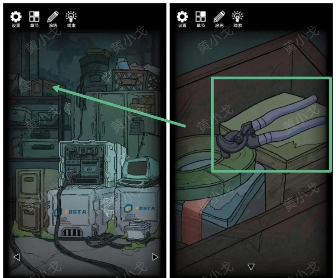 7.点击架子顶上的箱子,获得【电线剪】