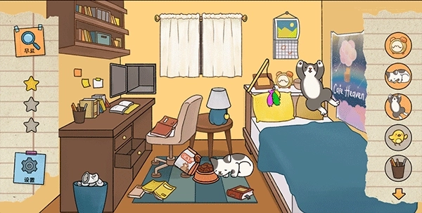 2、寻找各个场景里被隐藏的可爱猫咪,非常考验玩家的眼力和观察能力;