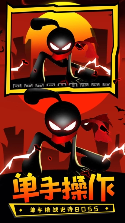 1.简约的画面风格,所有的火柴人角色都得到了完美的还原,加上酷炫的技能效果,感受沉浸式的体验。