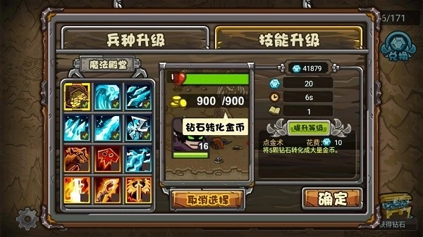 3、关卡中的技能使用需要用到钻石,不是土豪的话慎用,还不如留着升级培养士兵和英雄划算。