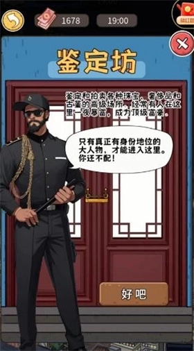 2.进入鉴定坊页面以后,门口的保安会告知我们【只有真正有身份地位的大人物,才能进入这里,你还不配!】