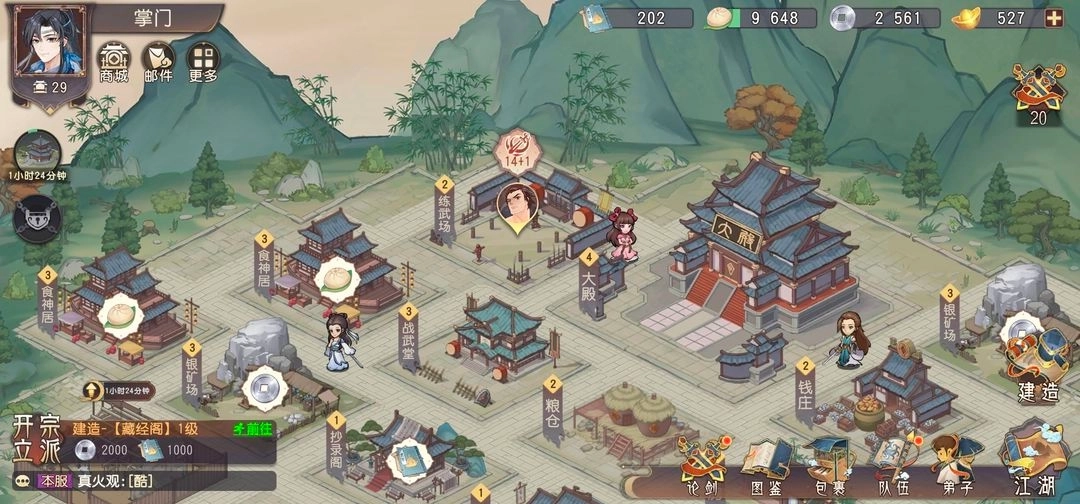 3、建立门派,招募英雄角色,让你的门派屹立在江湖之上,招募一些资质较好的弟子培养,让他们去为师门争光。