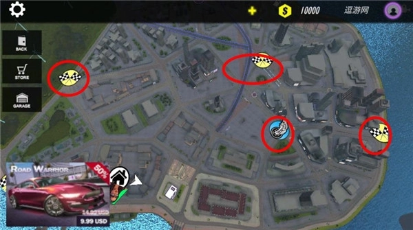 1、大地图中的竞速玩法,这是在这个开放城市中玩家可以参加的比赛,一般都是街头赛车比拼;