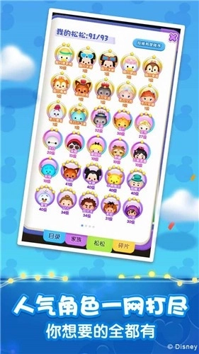 1,再来说说收集和养成玩法。这绝对是游戏最大的一个优势,把迪士尼旗下各个不同的IP单独区分开来做成关闭。
