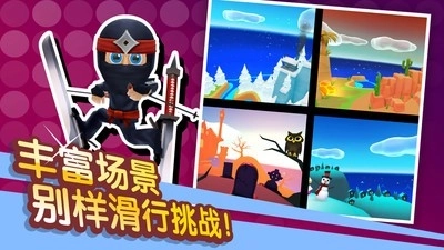 1,2D场景,经典画面,多样的关卡主题,精彩的滑梯挑战,指尖轻触,自由滚动滑动,在游戏中尽情翱翔。