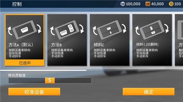 2、游戏支持2种方式来控制赛车:重力感应和屏幕控制,其中又分为7种玩家个性化的操作方式。