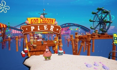 游戏的主要玩法涉及在比基尼海滩的不同关卡中收集道具并击败邪恶的BOSS机器人,同时在穿越平台时避开尖刺和火焰等环境危险。游戏中的主要收集物品包括彩色亮片、派大星的袜子和金色铲子。
