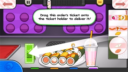 7、接下来玩家可以依据教程提示,开始制作寿司;