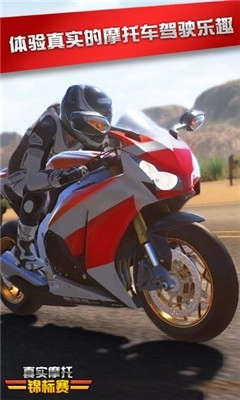 *真实的竞速感受:游戏凭借精致逼真的图像和声音效果,使玩家犹如亲临赛车现场,领略真正的摩托车竞速乐趣。