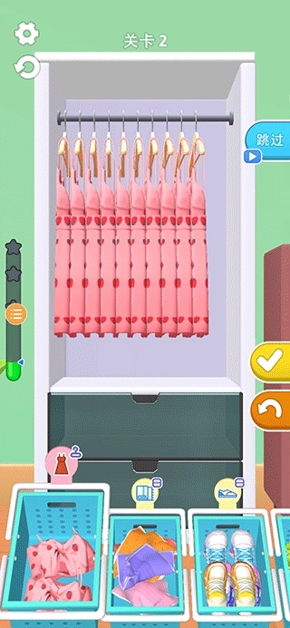 这是一款放置衣柜的游戏,采用卡通休闲风格和紧张刺激的音效,在放松的同时还能带来乐趣。游戏中有很多杂乱摆放的各种衣物,而衣柜空间有限,玩家需要合理利用衣柜空间进行整理,收纳得越完美获得的星星越多。总的来说,尽管衣柜陈列师的游戏玩法看似简单,但实际上非常考验玩家的动手能力。游戏还提供了许多不同关卡供玩家挑战,非常有趣。相信体验这款游戏后,你能在一定程度上提升自己的衣柜整理策略。如果你感兴趣,快来下载体验吧!