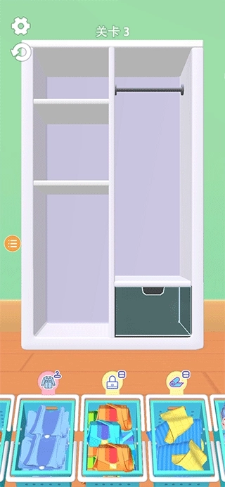 2、柜子空间有限,能放的地方就那么点,需要脑子飞快的运转,完成一关又一关的挑战。