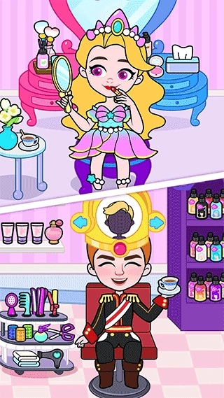 它来了,将带领你的孩子前往梦幻城堡。在游戏中,孩子可以自由搭配城堡内的各种装饰和玩偶。如果你觉得猫咪总是坐在凳子上不好看,可以将其拖放到其他位置。城堡目前有两层,楼上是娃娃们的起居室,主要进行休闲、化妆和绘画等活动。楼下是娃娃们的娱乐区,孩子们可以在这里游泳池里游泳,也可以在水族箱边观赏鱼类。当然,你还可以把它们全部放入水中。这么有趣的游戏,喜欢的话快来下载体验吧!